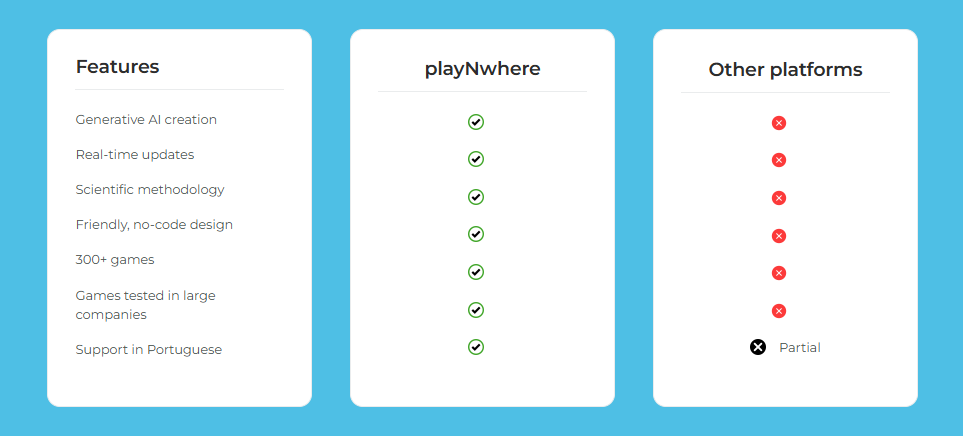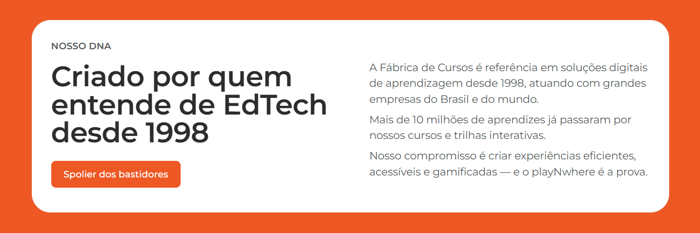Yes! playNwhere is the AI-powered gamified LXP created by Fábrica de Cursos, a corporate e-learning leader since 1998. With it, you can create AI-driven learning paths, games, rankings, and much more — without programming.